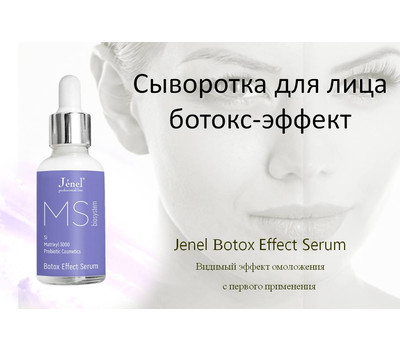 Сыворотка для лица ботокс-эффект Jenel Вotox Effect Serum — уникальное косметическое средство с видимым эффектом омоложения уже после первого применения. Сыворотка содержит инновационный пептидный миорелаксант SYN-AKE, который имитирует последовательность аминокислот в молекуле яда храмовой гадюки.